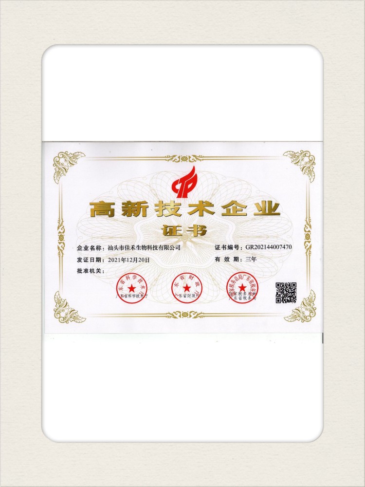 汕頭佳禾生物科技有限公司是一家致力于氨基酸及其衍生物研發(fā)、生產(chǎn)和銷售的國(guó)家高新技術(shù)企業(yè),先后通過了國(guó)家藥品GMP認(rèn)證,ISO9001質(zhì)量體系認(rèn)證、ISO14001環(huán)境管理體系認(rèn)證。目前,公司擁有“廣東省專精特新中小企業(yè)”、“廣東省氨基酸產(chǎn)品工程技術(shù)研究中心”、“汕頭市生物發(fā)酵工程技術(shù)研究開發(fā)中心”、“汕頭市知識(shí)產(chǎn)權(quán)優(yōu)勢(shì)企業(yè)”、“多項(xiàng)國(guó)家發(fā)明專利”、“廣東省守合同重信用企業(yè)”等多項(xiàng)資質(zhì)和榮譽(yù),旗下“佳禾牌”系列產(chǎn)品已成為原料藥行業(yè)知名品牌。 新泰市佳禾生物科技有限公司成立于2012年8月,注冊(cè)資金2億元,公司位于山東泰安新泰市新汶工業(yè)園區(qū),是國(guó) 家級(jí)高新技術(shù)企業(yè)、山東省“專精特新”企業(yè)、山東省制造業(yè)單項(xiàng)冠軍企業(yè)、泰安市科技型中小企業(yè)、泰安市農(nóng)業(yè)產(chǎn)業(yè)化龍頭企業(yè)、中國(guó)生物發(fā)酵產(chǎn)業(yè)協(xié)會(huì)理事單位。
